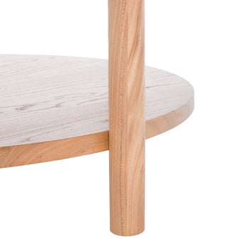 Update your home with the room brightening appeal of our Puck coffee table. Our round and airy two-tiered table feature a harmonious combination of a marble top and wooden base. Sleek in design and intricate in detail, the table is held together with cylindrical legs topped with a semi-circular hook, lending the table a floating and airy feel. The natural veining of white marble and lively organic grains of elm wood enliven any room with a graceful touch of nature. A sleek tabletop and low-lying shelf give ample room to display your beloved decor items.