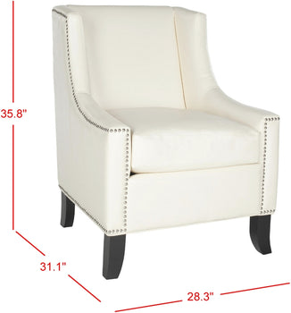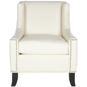 The epitome of transitional style, the Daniel Club Chair updates the living room classic with sloped arms and black birch wood legs. Rich in designer details, Daniel is upholstered in antique white PU leather and accented with chic silver nail head trim.