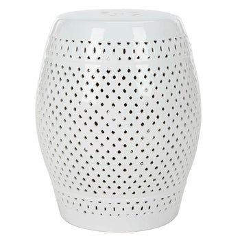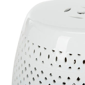 Designed to bring a soft sense of motion to today's decor, this Diamond Garden Stool is the perfect finishing touch to any indoor or outdoor space. Its clean white ceramic is masterfully detailed by a pierced diamond lattice that cleverly juxtaposes the gracefully curved silhouette.