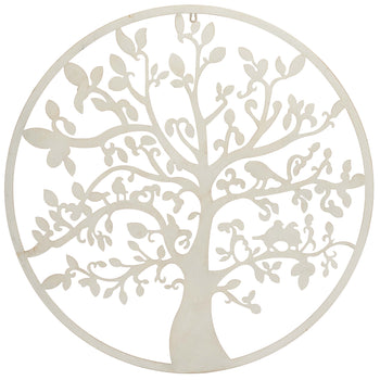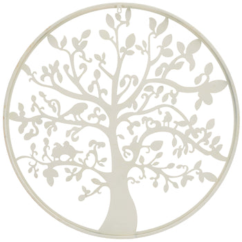 Add a cheerful and charming accent to your outdoor walls with our, Tree of life, wall art. Showcasing the silhouette of an abundant tree, the wall art attains a dreamy woodland appeal. It is skillfully crafted in iron to lend three-dimensional beauty to both your indoor and outdoor space. Enriched in a graceful white finish with touches of paint, our wall art will beautifully age to add a calming and cheerful touch to your outdoor living space.