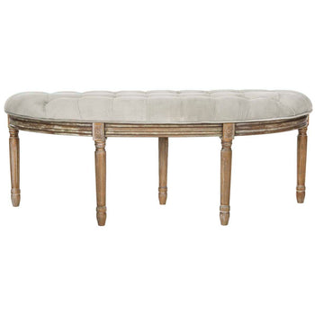 Alive with the timeless elegance of the finest French furnishings, this semicircle bench was inspired by pieces in Paris'sdecorative arts museum. Finely crafted natural wood details are paired with classic beige upholstery to create an instant focal point.