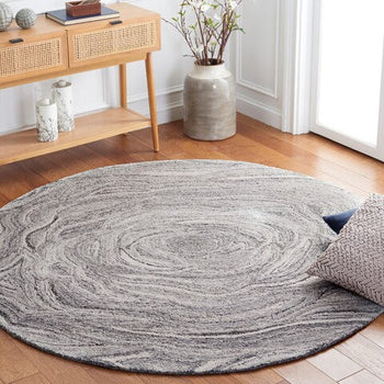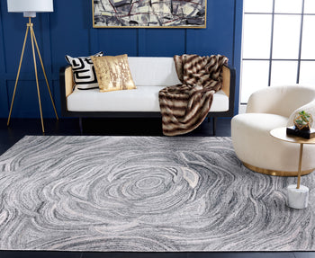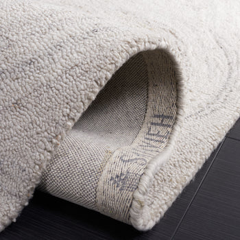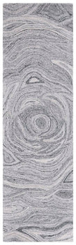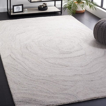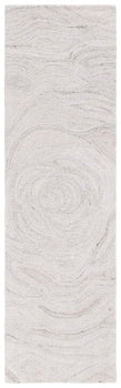 Elevate your home with this elegant 2'-3" X 8' runner area rug, meticulously hand-tufted in India and boasting a plush 1/2" height. The luxurious blend of 90% polyester and 10% wool ensures a soft yet durable surface that will adorn your floors for years to come. Finished in a tasteful palette of light grey and beige, this contemporary piece features a mesmerizing abstract pattern that exudes sophistication and modern appeal. The design delicately swirls, creating an engaging focal point for hallways or long spaces. Please note this exquisite runner is not washable and may require a non-slip pad to maintain its position gracefully on smooth surfaces.