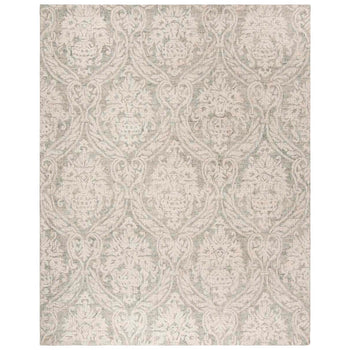 Indulge in timeless elegance with our handcrafted 2' x 3' accent rug, featuring a classic grey/ivory palette. Meticulously tufted by skilled artisans in India, this woolen masterpiece boasts a dense 1/2" pile height, offering a luxurious underfoot experience. Its sophisticated damask pattern exudes a sense of heritage and charm, seamlessly blending with both traditional and contemporary decors. While not machine washable or slip-resistant, the premium quality of this non-washable rug ensures longevity and easy spot cleaning. Elevate any space with this opulent, non-slip piece that promises to be an exquisite focal point in your home.
