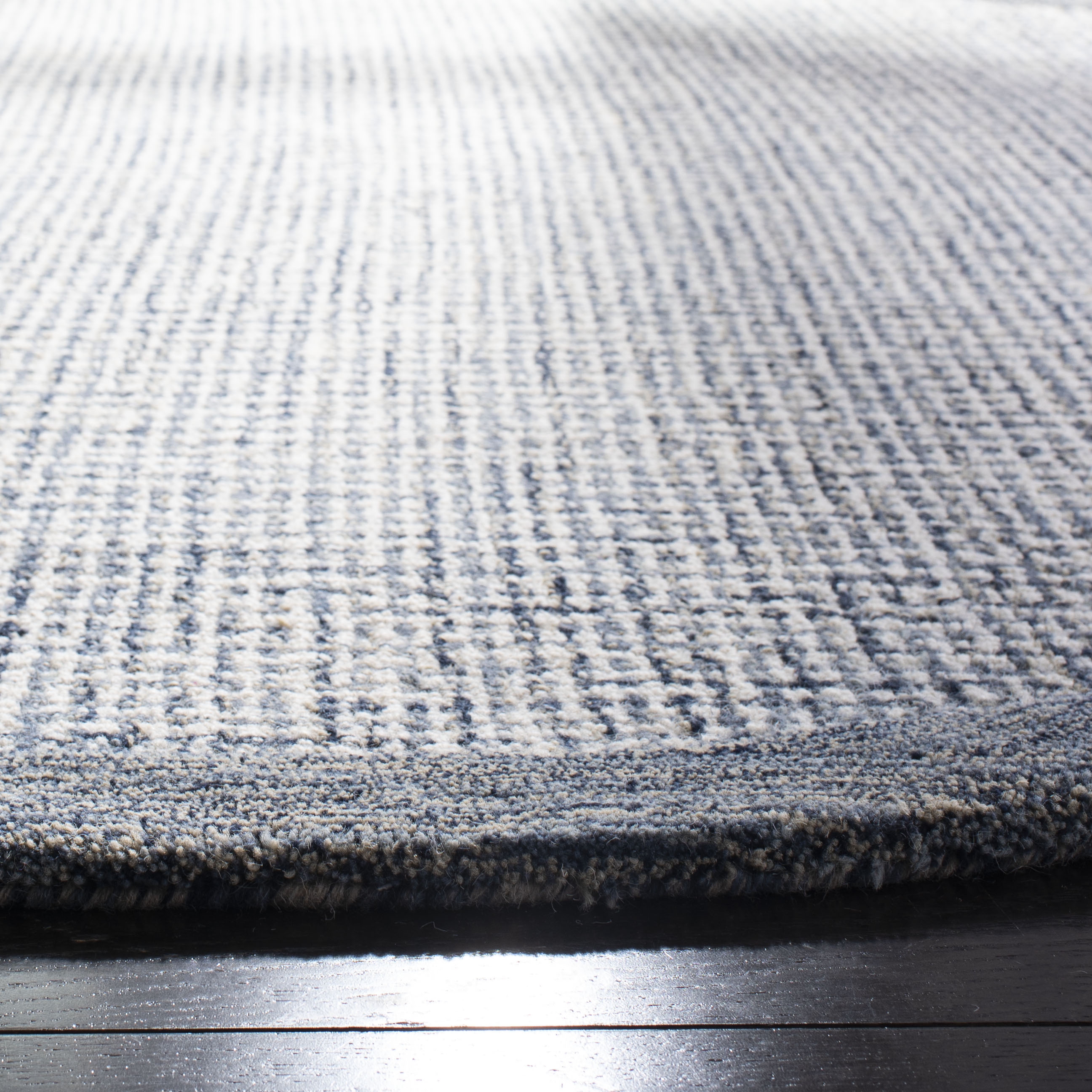 Elevate your space with the exquisite craftsmanship of our 2' X 3' Hand Tufted Wool Area Rug, made with pride in India. This accent rug boasts a plush 5/8" pile height that indulges your feet with every step. In a rich NAVY bordered by IVORY, the timeless color scheme exudes sophistication. The rug showcases a subtle yet elegant pattern, blending seamlessly into both modern and traditional decor. While it is not machine washable and lacks slip resistance, its quality wool construction ensures lasting beauty and enduring style. Perfect for adding a touch of understated luxury to any room.