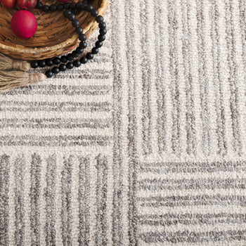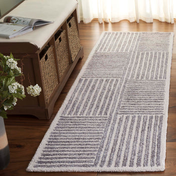 Discover elegance with our hand-tufted runner rug, a masterpiece from India. Measuring 2 foot 3 inches by 8 feet, its ivory and grey blend harmonizes effortlessly with contemporary decor. Crafted from a mix of wool and jute, this rug showcases geometric patterns that add a sophisticated flair to hallways or entryways. The 3/8 inch height ensures a comfortable underfoot feel. Elevate your space with style and substance, making this runner a perfect addition to any modern home.