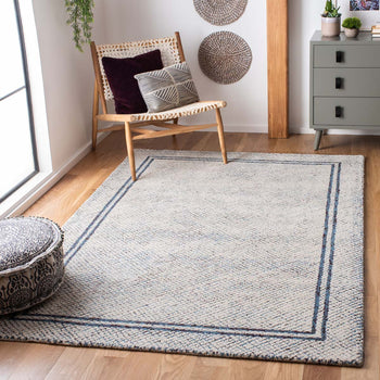 Introduce luxurious texture to your space with this hand-tufted wool accent rug. Crafted in India, it features an inviting ivory base elegantly framed by a contrasting navy border. With a pile height of 3/8", this 2' x 3' Bohemian-inspired rug brings a touch of global charm to any room. The intricate pattern weaves a tale of timeless design, while the wool construction ensures a soft, durable surface underfoot. Please note: this exquisite piece is not washable and does not include slip resistance. Enhance your home with the artisanal beauty of this accent rug, perfect for adding a sophisticated flair to your decor.