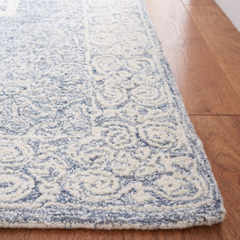 Elevate your home decor with our exquisite Hand Tufted Wool Runner Rug, a perfect blend of traditional artistry and modern design. This 2'-3" X 8' runner rug presents a delightful medley of ivory and blue tones, crafting an elegant and refreshing statement for any hallway or long space in your home. The rug's pattern features a harmonious combination of floral and geometric motifs, exuding a sophisticated and timeless charm that complements various interior styles.