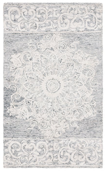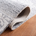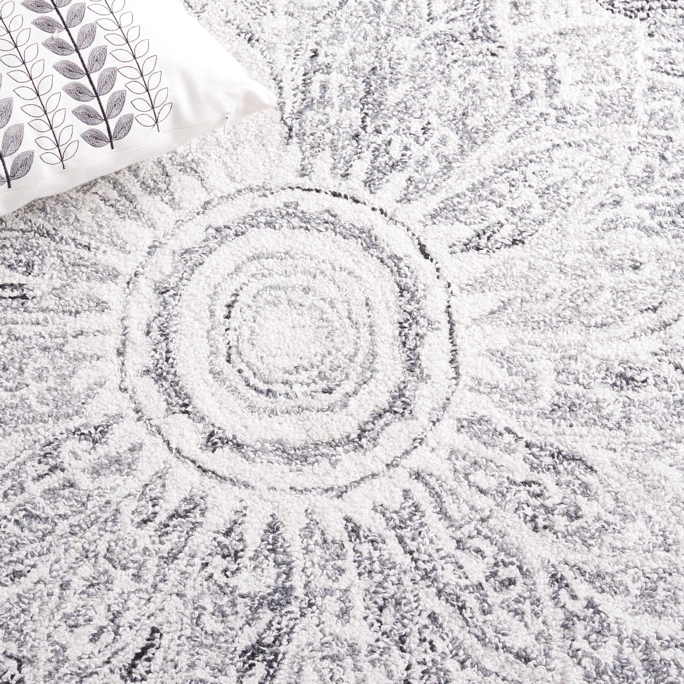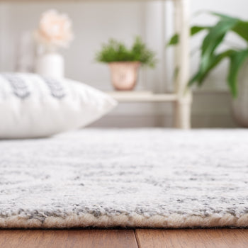 Artisanally constructed using pure wool, this rug brings both comfort and durability underfoot. The meticulously designed surface features an exquisite pattern that showcases a blend of ivory and light grey tones, creating a serene and inviting atmosphere. Its moderate pile height of 3/8 inch is perfect for high-traffic areas, providing a soft yet sturdy texture that caters to both cozy and active lifestyles.