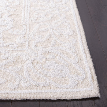 Enhance any corridor with the timeless charm of this 2'-3" X 8' hand-tufted runner rug. Crafted in India with the highest quality wool, it presents a luxurious 3/8" pile height that feels inviting underfoot. The rug's ivory and beige hues create an elegant canvas that highlights its intricate pattern. With a durable cotton cloth backing, this piece promises longevity and resilience, making it a splendid addition to your space.