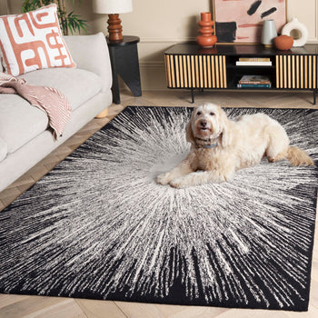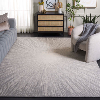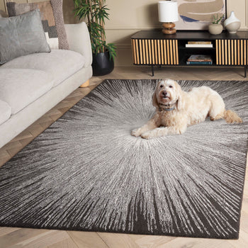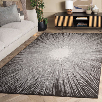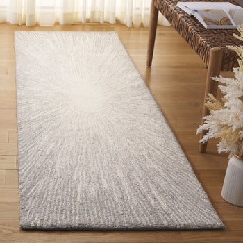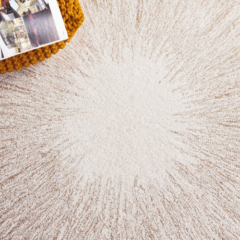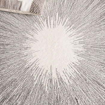 Elevate your home decor with our exquisite hand-tufted runner rug, showcasing a stunning sunburst design in a harmonious blend of ivory and dark beige hues. This luxurious runner measures 2'3" by 8' and features a comfortable pile height of 3/8", providing a soft surface that's perfect for high-traffic areas.