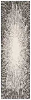 The captivating pattern depicted in the image reflects a unique visual texture that radiates from the center, creating an inviting and dynamic aesthetic. This modern runner rug is not just a floor covering but a statement piece that effortlessly enhances any space with its sophisticated design and timeless elegance.