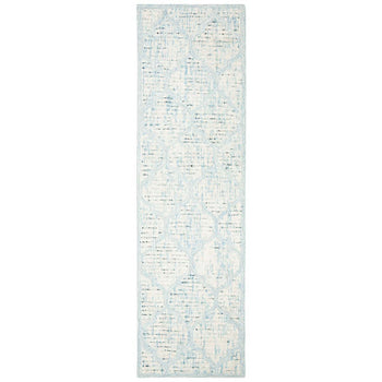 Introduce timeless elegance to your home with this luxurious runner area rug, intricately crafted in the soothing hues of ivory and light blue. Spanning 2 feet 3 inches by 8 feet, this runner is the epitome of sophistication and a perfect addition to elongate your hallways or accentuate your living space.