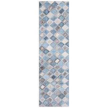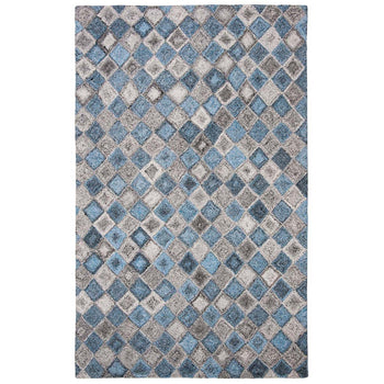 Elevate your space with the artful elegance of this contemporary 4' x 6' small rectangle area rug. Hand tufted in India, this high-quality piece blends 65% wool, 25% viscose, and 10% nylon to create a luxurious pile with a height of 1/2". A harmonious mix of grey and blue hues in a distinct geometric diamond pattern imbues your room with a sense of modern sophistication.