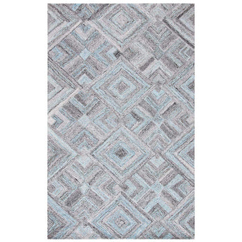 Elevate your space with this sophisticated 4' x 6' contemporary style area rug, boasting a chic grey and turquoise geometric pattern. Masterfully crafted in India using hand tufted techniques for a luxurious height of 3/8", this small rectangular rug combines a durable blend of 65% wool, 25% viscose, and 10% nylon. Its plush feel underfoot is complemented by a modern design that captures the eye, making it a perfect centrepiece for any room. Notably, this rug is not washable and lacks slip resistance, so a rug pad is recommended for added stability. Revamp your decor with this artful and high-quality addition to your home.
