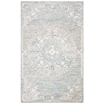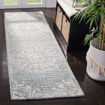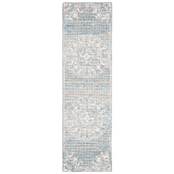 Elevate your home with this exquisite hand-tufted wool runner rug crafted in India. Measuring 2'-3" X 8' and featuring a plush 1/2" pile height, this runner brings timeless elegance in a serene light blue palette, blending beautifully with contemporary decors. Its intricate pattern showcases delicate florals overlaid on a striated field, offering a balance of classic and modern aesthetics. Designed for longevity and to enrich any hallway or narrow space, this piece is not washable and lacks slip resistance, recommending the use of a rug pad for stability. Create an upscale ambiance effortlessly with this sophisticated runner rug.