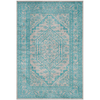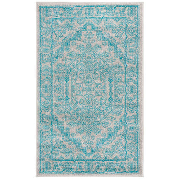 Elevate your living space with our exquisite 3' X 5' Light Grey / Teal area rug. Designed with a timeless pattern, this small rectangle rug boasts a plush 3/8" height, offering a soft underfoot feel and sophisticated aesthetic. Expertly power-loomed in Turkey, it is a durable blend of 55% polypropylene, 40% jute, and 5% polyester, combining strength with a touch of luxury. This piece's OEKO-TEX certification ensures it is free from harmful substances, making it a safe and stylish choice for any room. Its elegant color palette and intricate design will seamlessly complement your decor, providing a serene and inviting atmosphere.