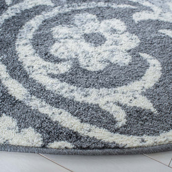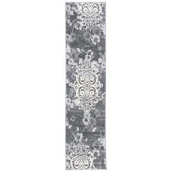 Introducing our exquisite Traditional-style Runner Rug, the epitome of timeless elegance for any hallway or elongated space. Sized at a convenient 2'-1" X 6' and boasting a comfortable 3/8" pile height, this silver and ivory masterpiece has been meticulously crafted in Turkey using a power-loomed technique, ensuring precision and durability.