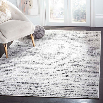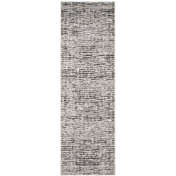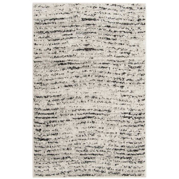 Elevate your space with the contemporary charm of our 2'-6" x 4' accent rug, boasting a chic black and silver color palette. This power-loomed piece is expertly crafted in Turkey, merging modern technology with classic style. With a pile height of 3/8", it offers a balanced blend of comfort and durability. The composition of 55% polypropylene, 40% jute, and 5% polyester ensures resilience against daily wear, making it a practical addition to any setting. The OEKO-TEX certification guarantees that it's free of harmful substances, offering peace of mind alongside its stylish appeal. The rug's pattern features an elegant array of linear strokes, adding a dynamic visual texture that complements both traditional and contemporary decors. Indulge in the artful synthesis of function and fashion with this exquisite area rug.