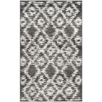 Introducing our elegant runner area rug, sized at 2'-6" X 6' and a comfortable height of 3/8". This sophisticated CHARCOAL / IVORY piece boasts a dynamic abstract pattern that can turn any hallway into a statement of style. Constructed with power-loomed precision, it's a durable blend of 55% polypropylene, 40% jute, and 5% polyester, offering both resilience and comfort underfoot. Made in Turkey, this rug exudes craftsmanship and quality. OEKO-TEX certification guarantees that it's free from harmful substances, making it a safe choice for your home. Elevate your space with this chic, low-pile runner that masterfully combines form and function.