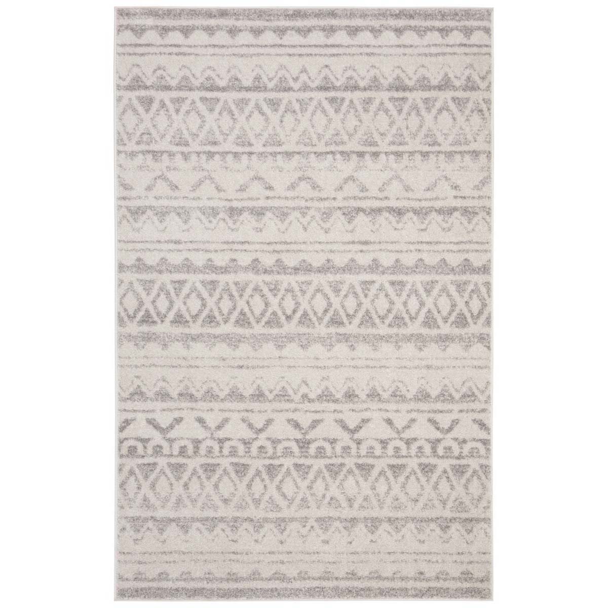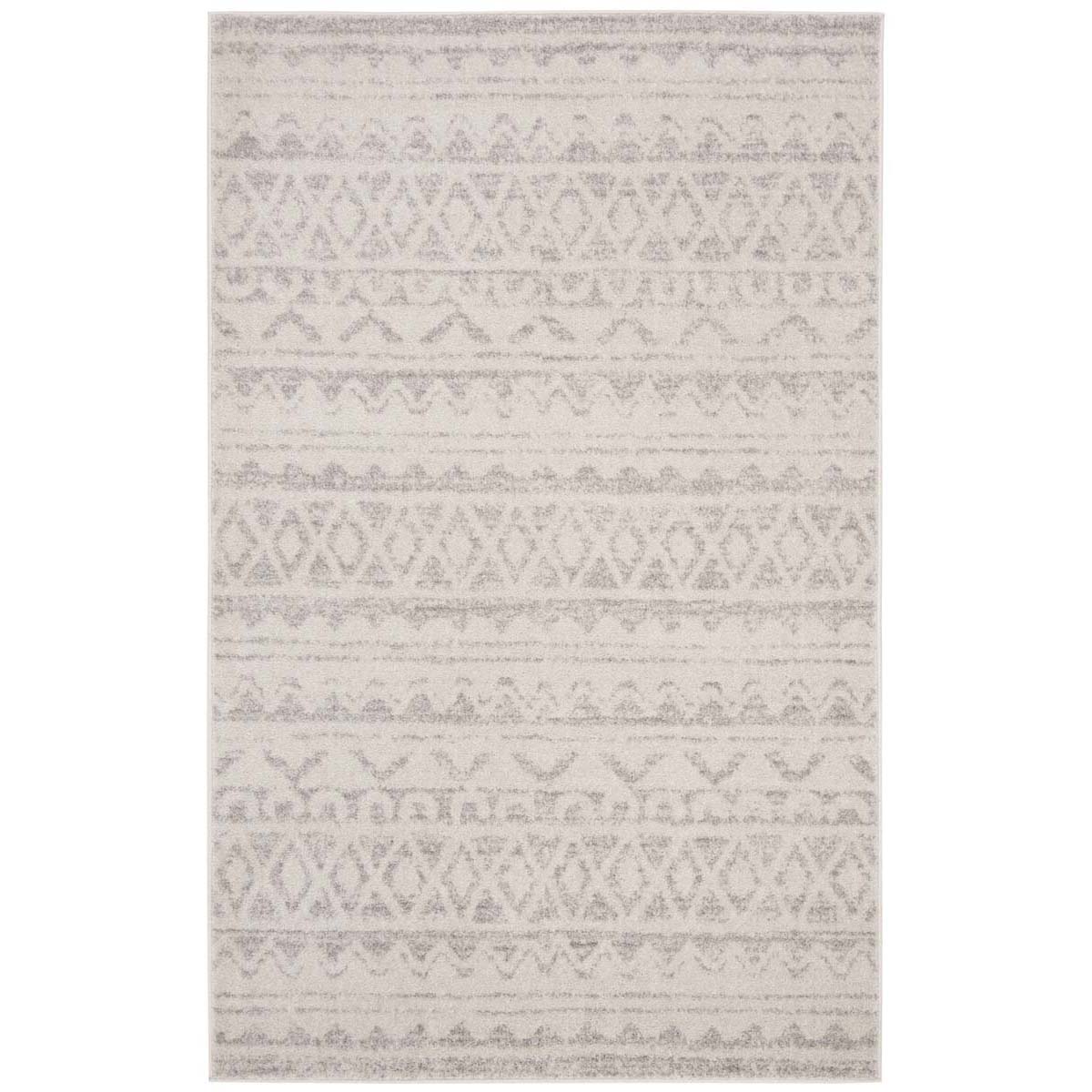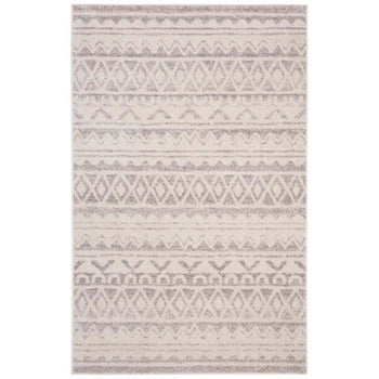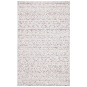 Elevate your space with this exquisite 2'-6" X 4' accent area rug featuring a harmonious ivory and grey color palette. The timeless design, inspired by tribal motifs, integrates seamlessly into both contemporary and traditional decor. Skillfully crafted in Turkey using a power-loomed technique, this rug promises durability and a soft underfoot experience, thanks to its high-quality blend of 55% polypropylene, 40% jute, and 5% polyester. Its convenient pile height of 3/8" makes it suitable for high-traffic areas, while the OEKO-TEX certification ensures it's free from harmful substances. Add a touch of elegance and comfort to your home with this stylish, easy-to-maintain piece.