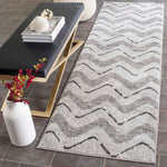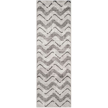 Elevate your hallway or narrow space with this sophisticated and durable 2'-6" X 6' runner rug, showcasing an elegant silver and charcoal zigzag pattern that promises to enhance your decor with its timeless style. Crafted with precision on a power loom, this rug boasts a comfortable 3/8" pile height, offering a blend of 55% Polypropylene for durability, 40% Jute for natural strength, and 5% Polyester for a subtle sheen. The result is a resilient textile designed for longevity and effortless maintenance. Proudly made in Turkey, this runner captures the essence of modern design while ensuring ethical manufacturing, as certified by OEKO-TEX, guaranteeing that it's free from harmful substances. It's the perfect combination of form, function, and fashion for your living space.