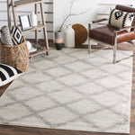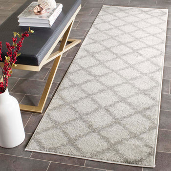 Elevate your space with the timeless elegance of our Ivory/Silver Runner Rug. Sized at a versatile 2'-6" X 6' with a comfortable pile height of 3/8", this piece is designed to seamlessly blend with your existing decor. The runner's chic diamond pattern imbues your home with a touch of sophistication.