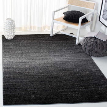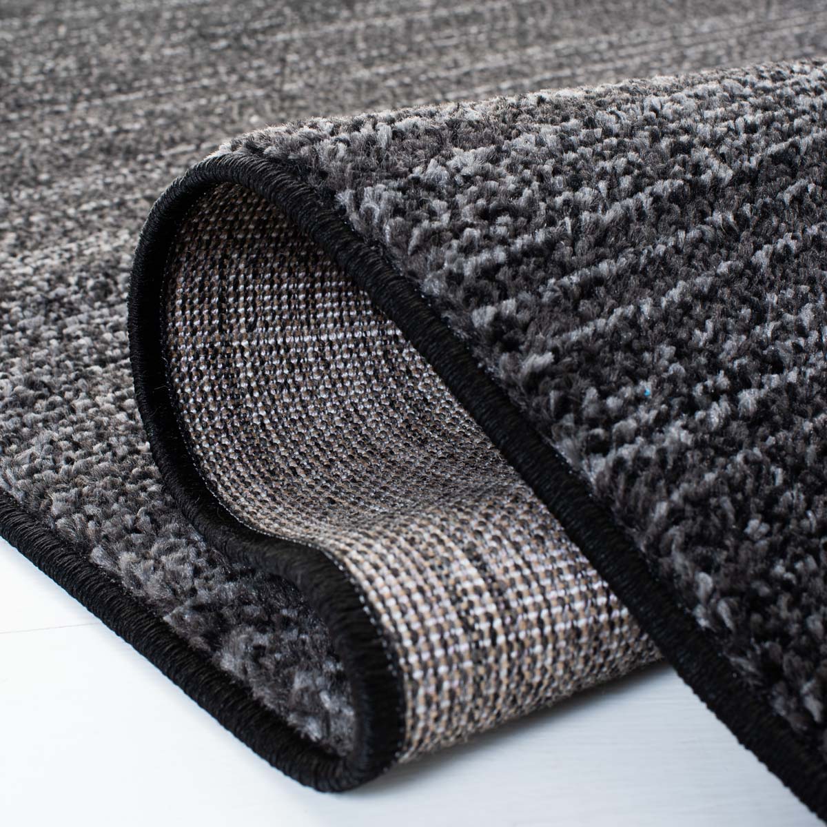 The rug's sophisticated dark grey/light grey palette effortlessly complements any decor, while its subtle gradations add depth and interest to the design. The symmetrical pattern emanates a sense of tranquility and balance, perfect for creating a serene ambience.