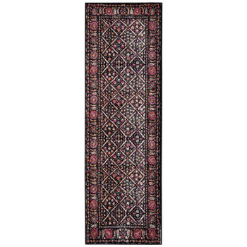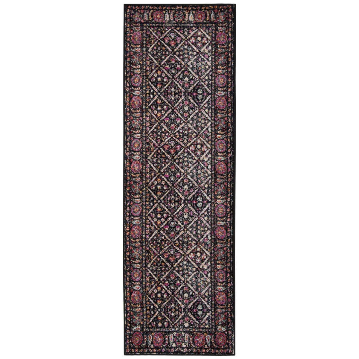 Elevate your space with the exquisite design of our Black/Fuchsia rug. Crafted in Turkey using power-loomed technology, this piece boasts a bold, intricate pattern with mesmerizing symmetry that adds a touch of elegance to any space. The rug's durable blend of 55% polypropylene, 40% jute, and 5% polyester ensures both comfort and longevity, with a practical 3/8" pile height for easy maintenance. Adorn your home with this OEKO-TEX certified runner, a harmonious blend of traditional craftsmanship and contemporary style.