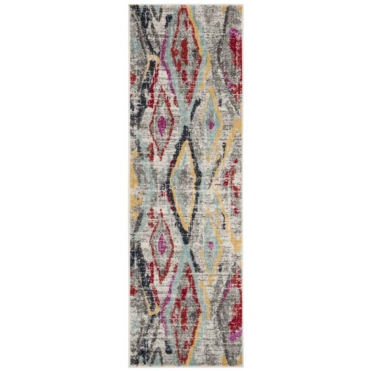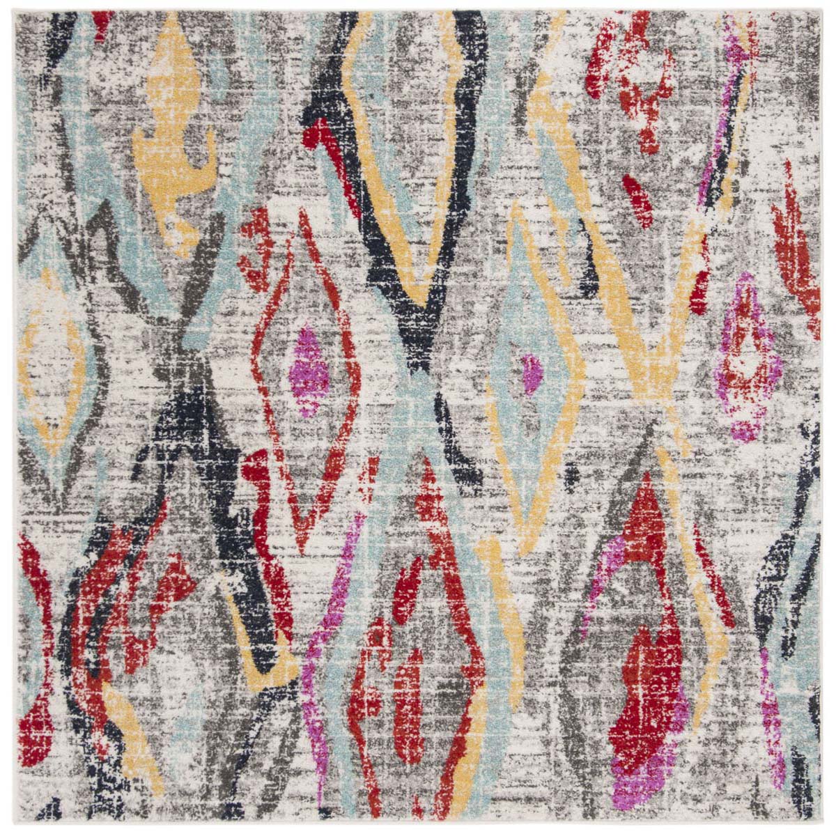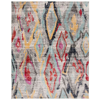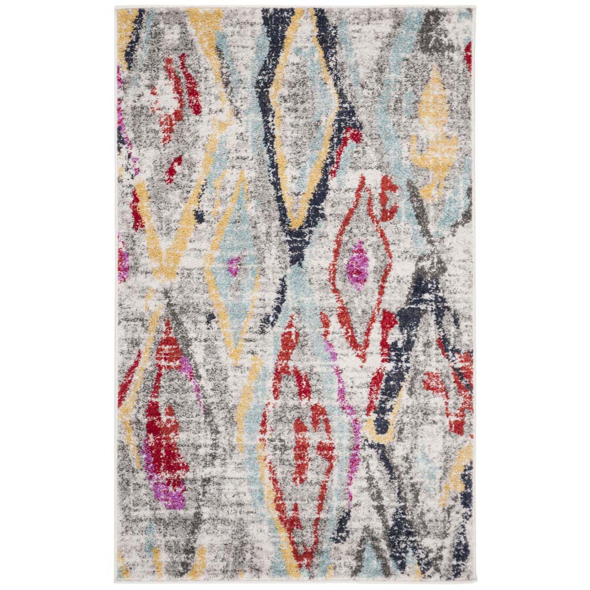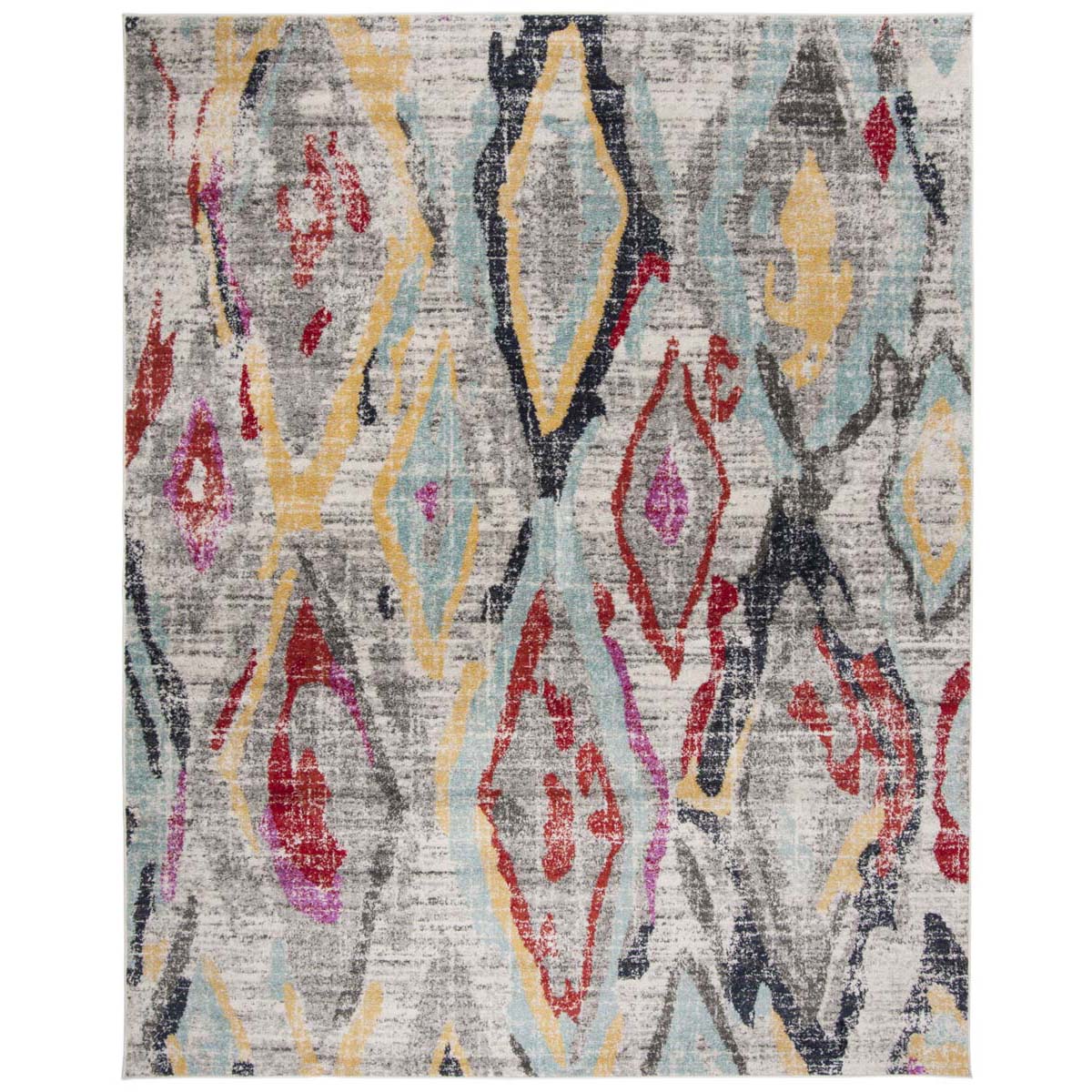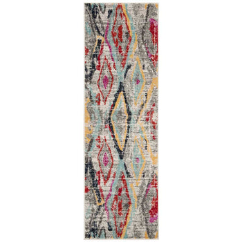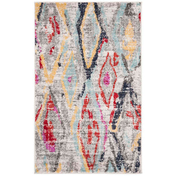Elevate your space with the vibrant allure of our Light Grey/Red Rug. Perfectly sized, this exquisite piece boasts a modern twist on traditional patterns, creating an eye-catching focal point in any area. The striking blend of light grey infused with dynamic strokes of red, teal, yellow, and hints of purple brings a contemporary yet eclectic charm to your decor.