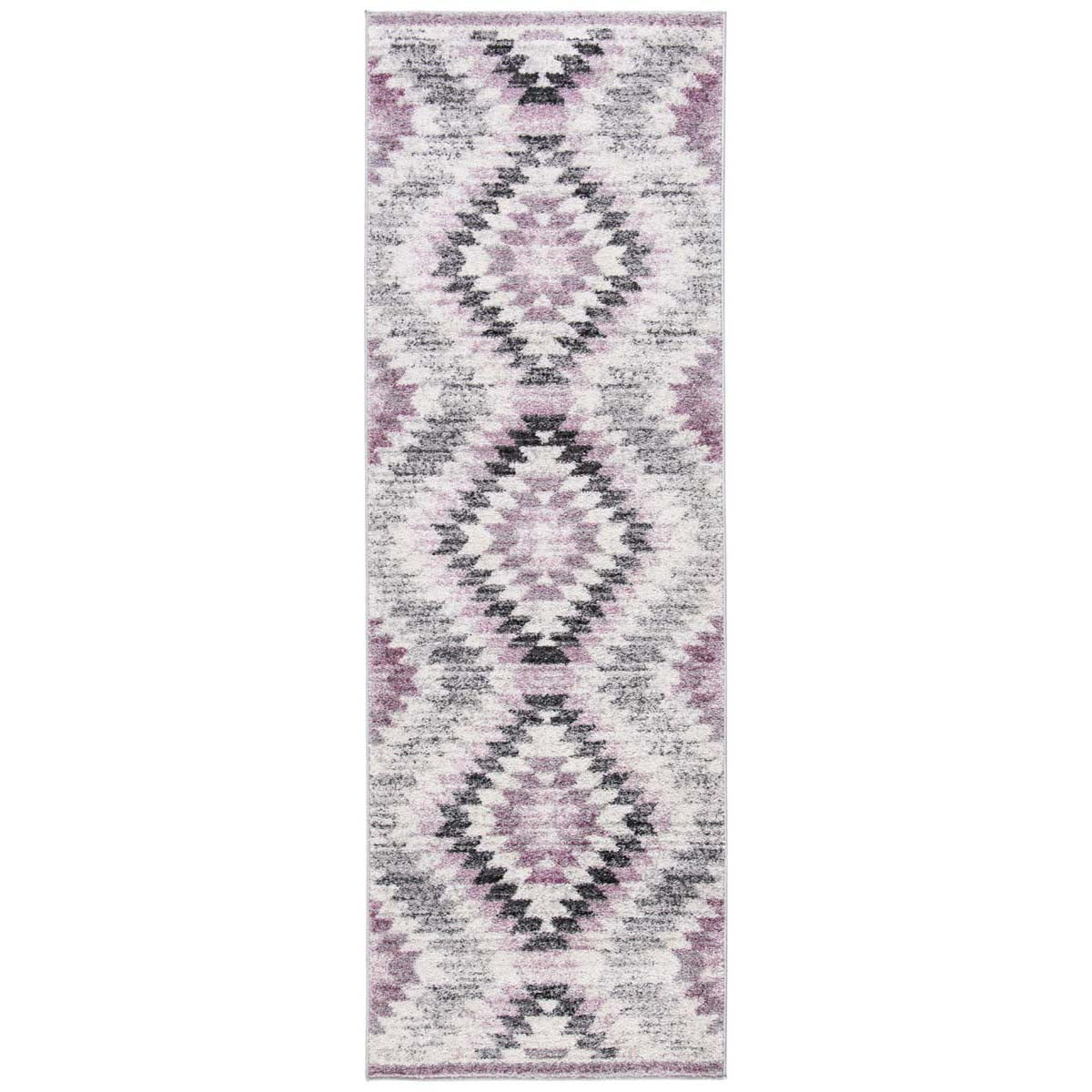 Elevate your living space with the modern allure of our Contemporary Plum/Ivory Runner Area Rug, an exquisite addition to any room seeking a hint of sophistication. Expertly crafted in Turkey, this 2-foot 6-inch by 8-foot runner boasts a plush height of 3/8 inches, offering both style and comfort underfoot.