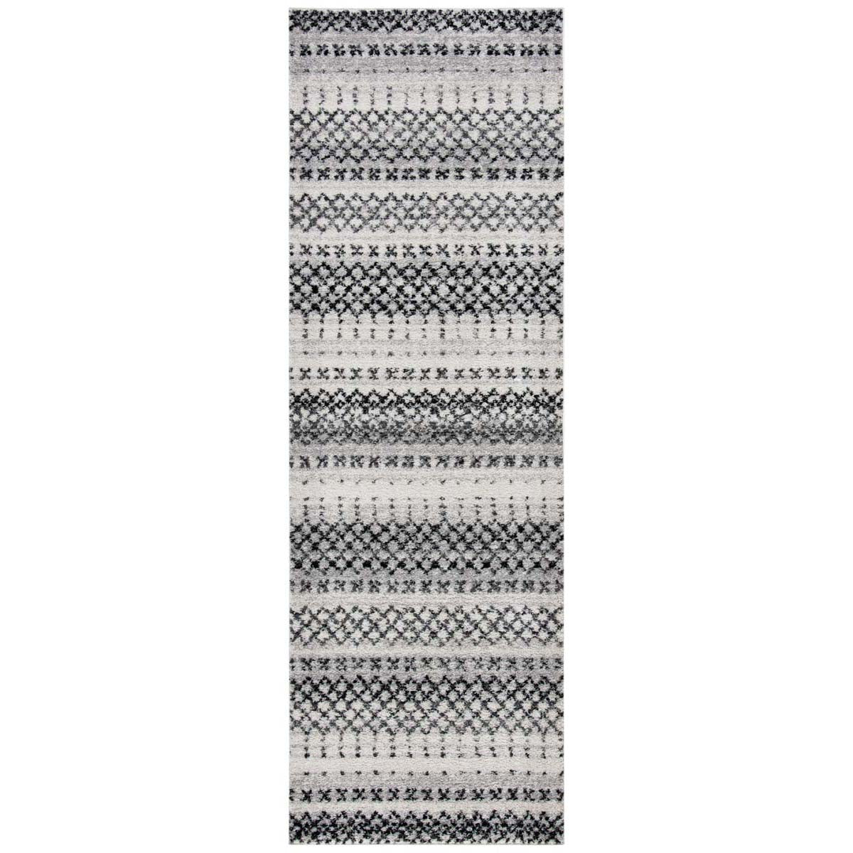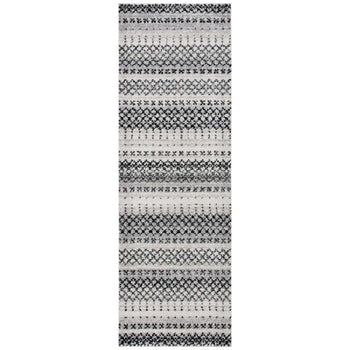 Elevate your home decor with this modern Grey/Ivory contemporary style runner rug, perfect for adding a touch of elegance to any hallway or narrow space. Measuring 2 feet 6 inches by 8 feet with a comfortable 3/8 inch pile height, this runner rug features an intricate power-loomed construction that ensures both durability and a delicate texture underfoot.