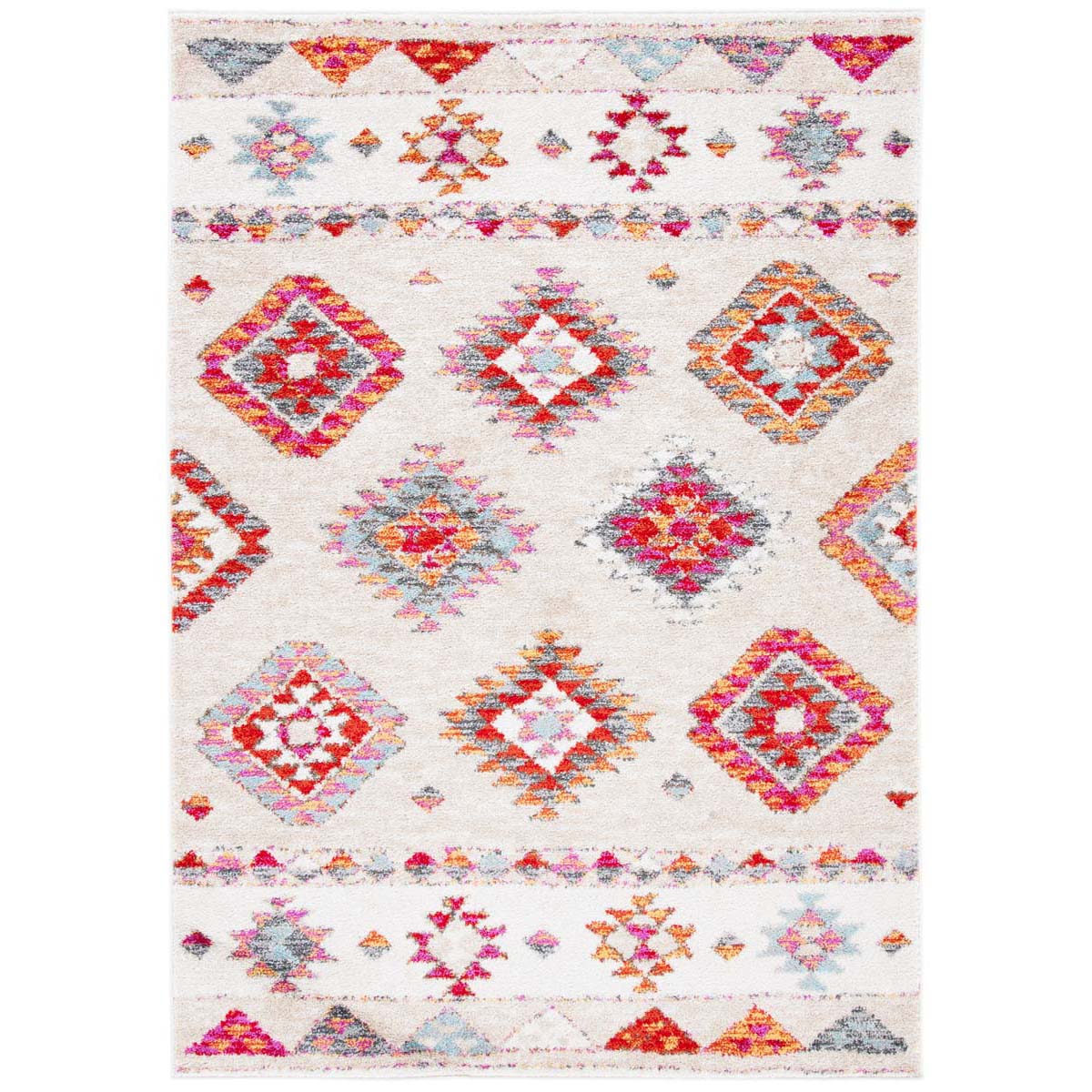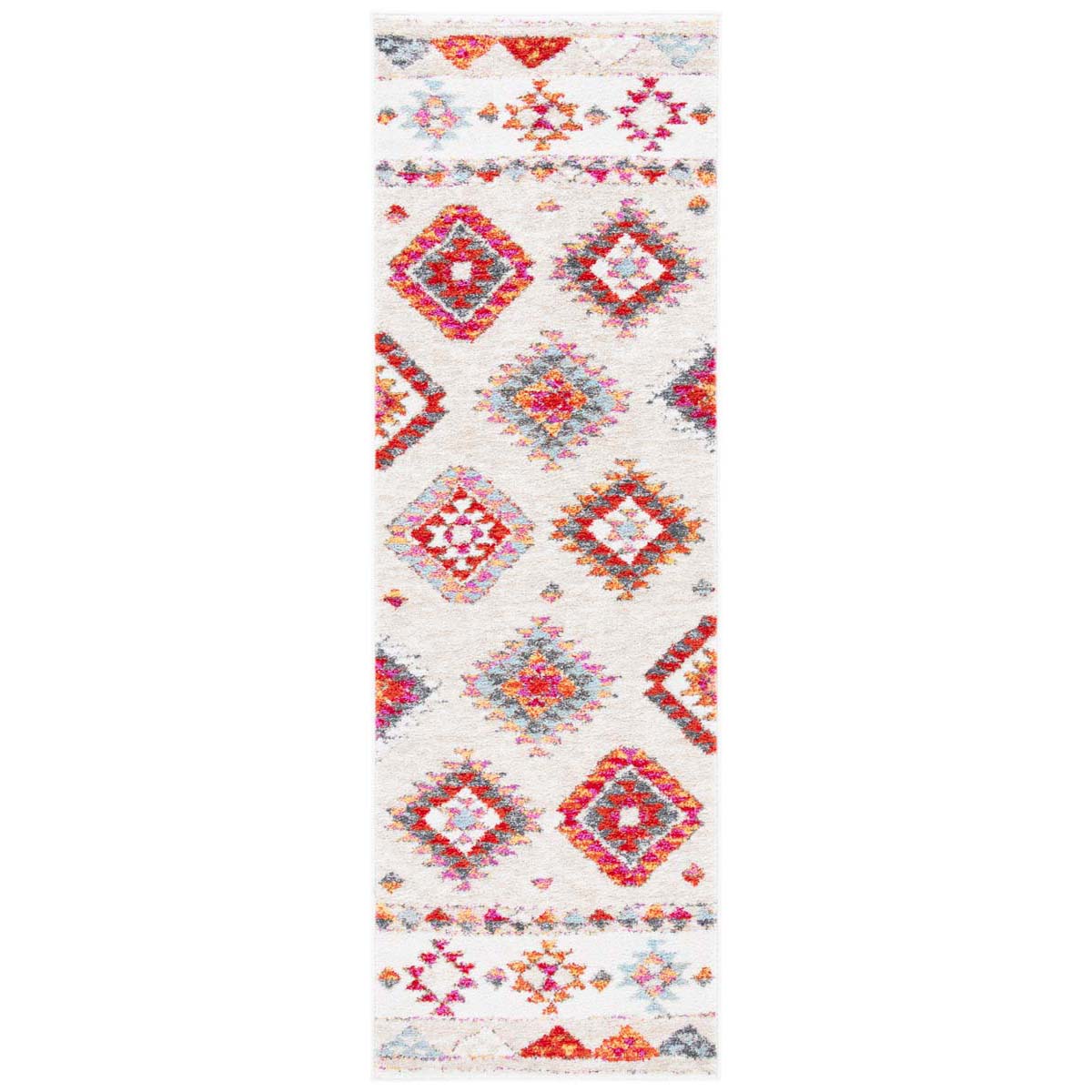 Introducing our exquisite 2'-6" x 8' Runner Area Rug, a blend of traditional charm and modern flair. With a comforting height of 3/8", this piece exhibits a beautifully interwoven pattern featuring bold reds juxtaposed against serene beiges, creating an inviting palette for your hallway or living space.