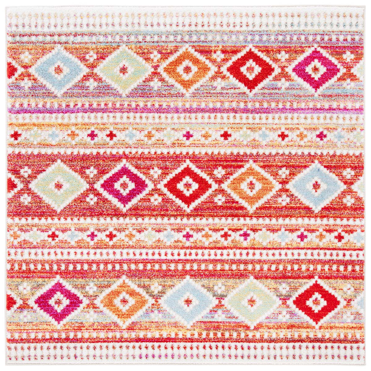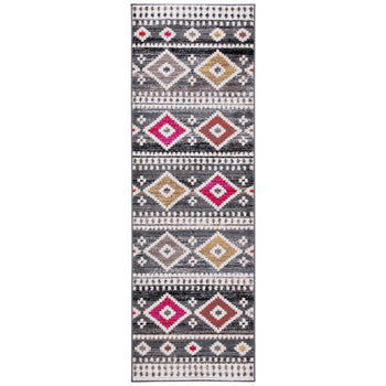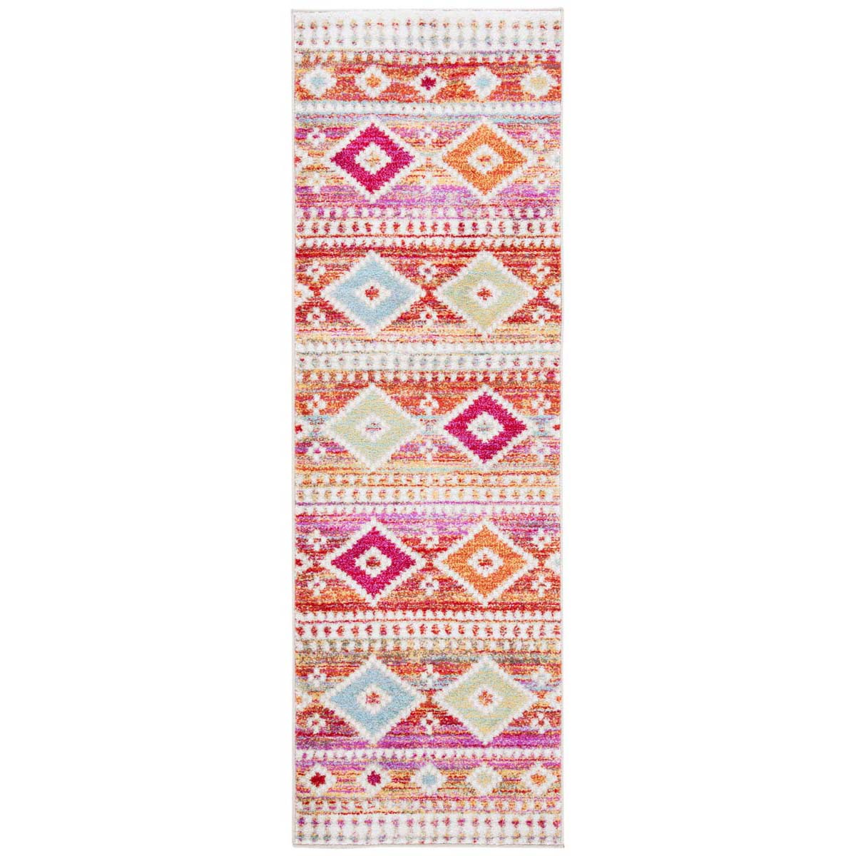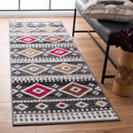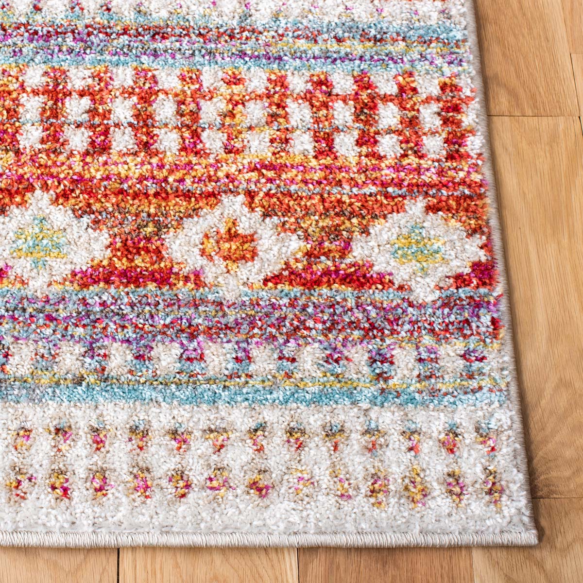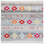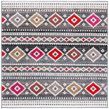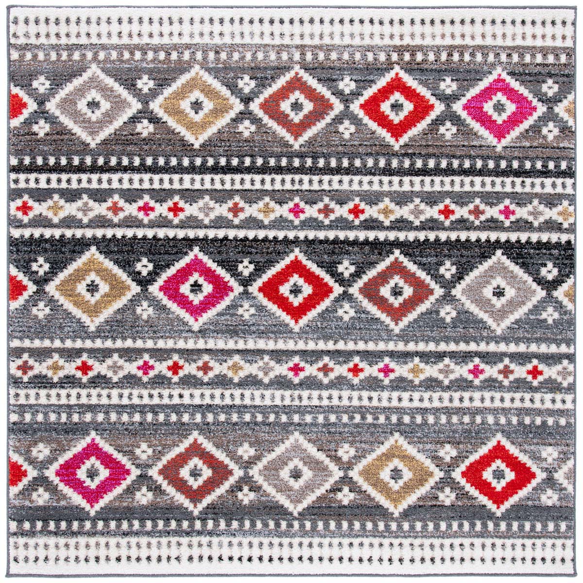 Enrich your living space with this OEKO-TEX certified rug, which guarantees that it's free from harmful substances. The tasteful light grey and ivory hues provide a versatile foundation for your decor, while the vibrant pattern features an array of geometric motifs and a playful mix of accent colors, adding a touch of elegance and charm to any room.