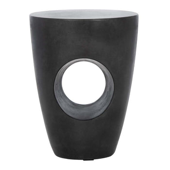 Inspired by the African influence present in the legendary work of modernist sculptors, this contemporary concrete accent table was designed for the collector. Its gentle curves and cut out detail create an artistic focal point in any well appointed room. Perfect for indoor and outdoor use.