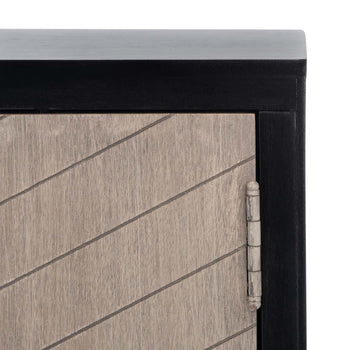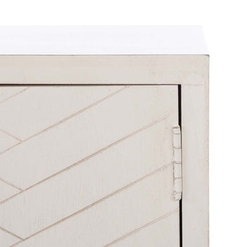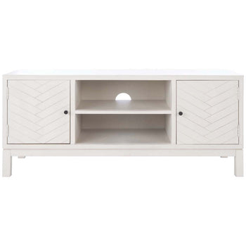 Give your entertainment space a touch of artistic minimalism with this Ajana Media Stand. Ajana's clean lined frame in distressed white is beautifully offset by the herringbone inspired chevron pattern on its two doors, while an open shelf provides ample space for consoles or devices.
