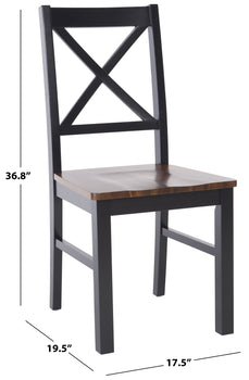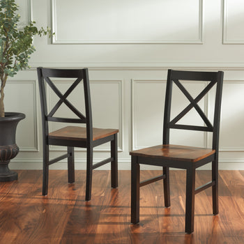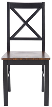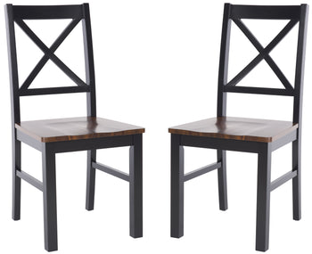 A modern iteration of a classic Sheraton square back, this Akash Dining Chair is vintage inspired yet thoroughly new. The X detail on its acacia and rubberwood back make Akash absolutely timeless while its black and walnut finishes make it perfect for today's versatile décor. Sold in sets of two.