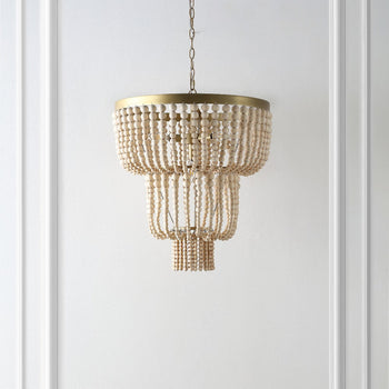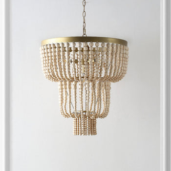 Enliven your home with the elevated and graceful look of the Aleynne extendable chandelier. The classic style meets rustic charm with our contemporary chandelier. Wooden beads beautifully cascade over the tiered chandelier creating an elegant contrast with its gold frame. Vouching for a powerful and eye-catching design, our chandelier can serve as the breezy and charming centerpiece for your entryway, living area, or dining room.
