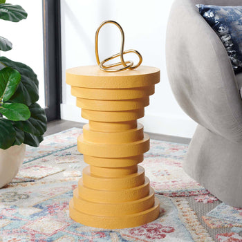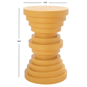 Add a graphic and striking accent to your home with our Ali Accent Table. Round discs are stacked together to attain a sculptural silhouette. Featuring voluminous curves and rich yellow hues, the accent table is sure to make a bold statement in any setting. Easily transforming your living area into the perfect place to entertain.