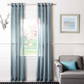 Bring the beauty of diffused natural light into any Decor with these contemporary beige sheer drapes. Designed to create a gentle glow with their durable polyester/linen blend, 8 strong grommet rings on each panel ensure they will open and close easily.