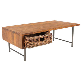 Give your living room a touch of rustic warmth with this Allester Coffee Table. Designed with an artistic, asymmetrical wood frame in a rich brown tone, Allester features one stylish rattan drawer ideal for stowing books, magazines, or remotes.
