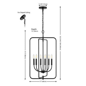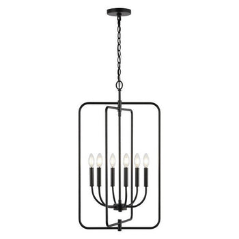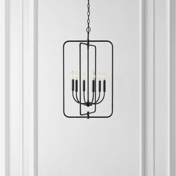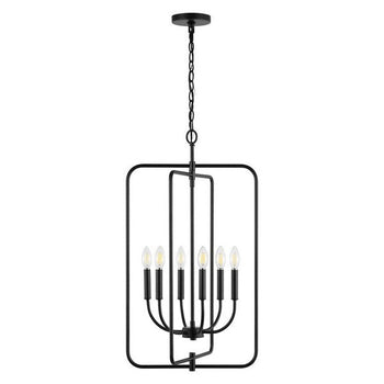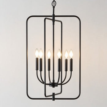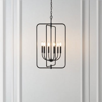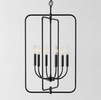 Lend a refined and contemporary update to any corner with Alto extendable pendant. Classic notes lend statement appeal to our beautifully refined and minimalistic chandelier. Its slender rectangular frames interlock at an angle to capture and intrigue the eye. Completed with a black metallic finish, our pendant adds stunning dimension to any room. Its six candle-style lights are held aloft with curved arms for added grace and charm. The extendable pendant illuminates your reading nook, dining area, or kitchen island with a warm and pleasant glow.