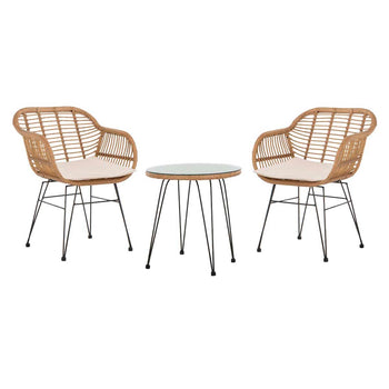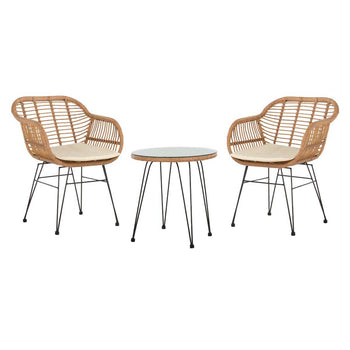 Whether it's an alfresco lunch on the terrace or a romantic moonlight dinner, this contemporary 3 piece lounge set is a must have for outdoor living. Crafted with light brown rattan, it chic retro hairpin legs bring fresh modern style to any soiree.