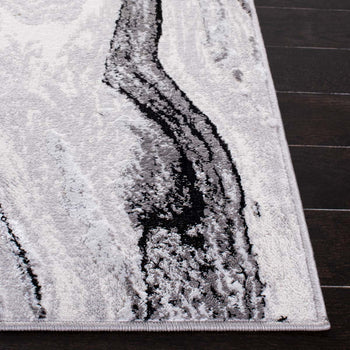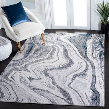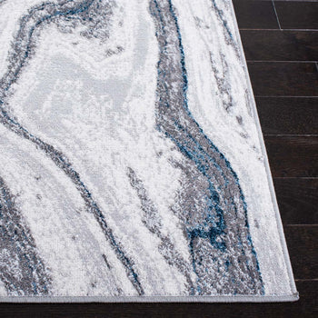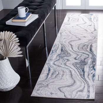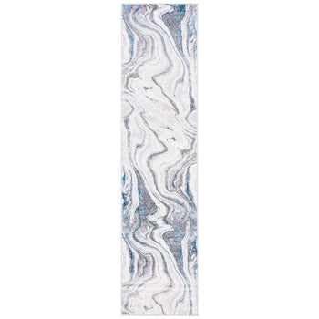 Transform your space with the sleek sophistication of our Contemporary Grey/Blue Runner Rug. Measuring 2' x 8' with a height of 3/8", this elegant runner will beautifully accent your hallway or living area. Constructed with precision on a power loom, this rug boasts a harmonious blend of 50% Polypropylene and 50% Polyester, offering durability along with a gentle, plush feel underfoot.