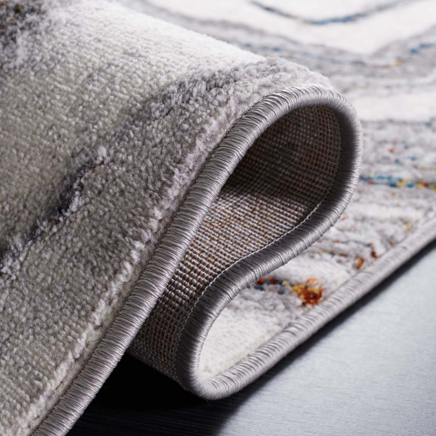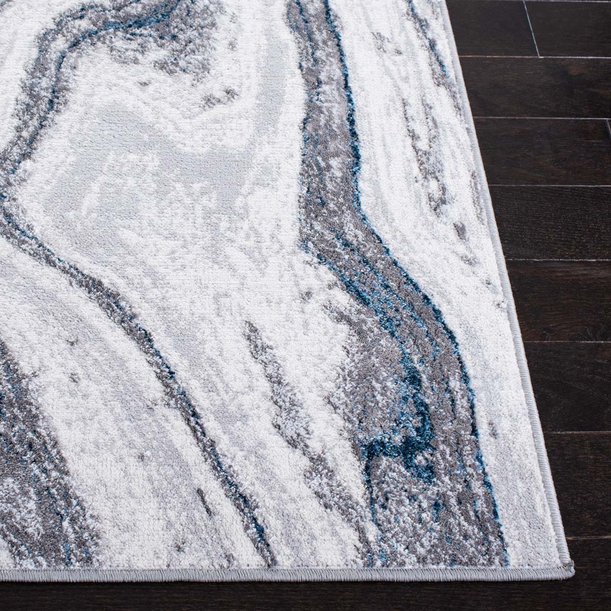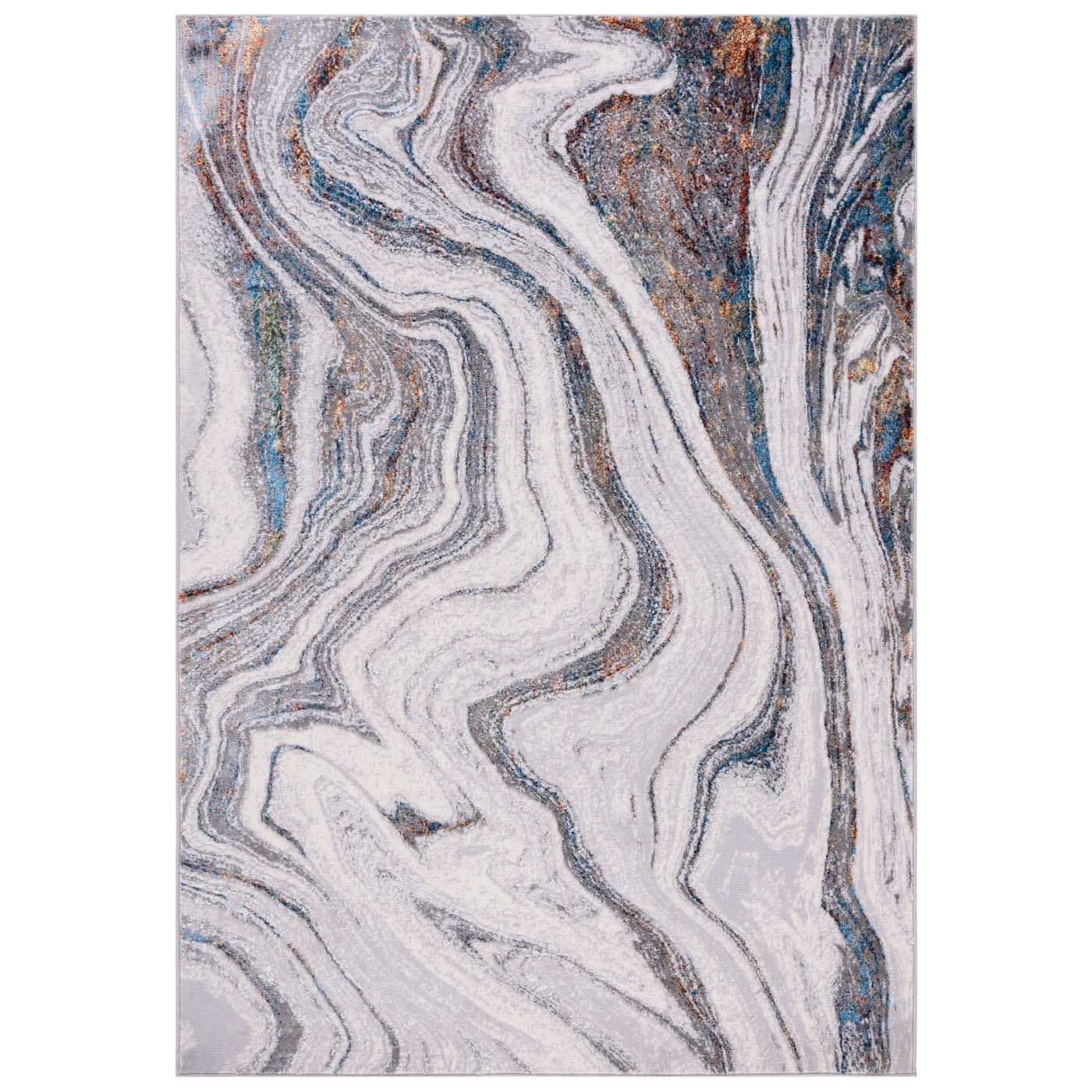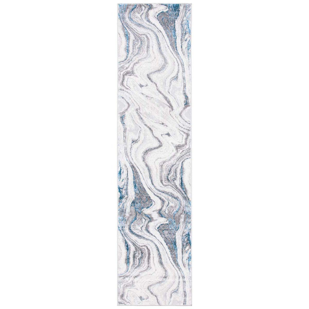 Made in Turkey, this runner features a captivating pattern that simulates flowing streams, adding a touch of serenity and style to your decor. Its grey and blue tones are versatile, seamlessly complementing your existing interiors. Moreover, the OEKO-TEX certification assures that this rug is crafted without harmful substances, making it a safe and eco-friendly choice for your home.
