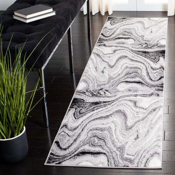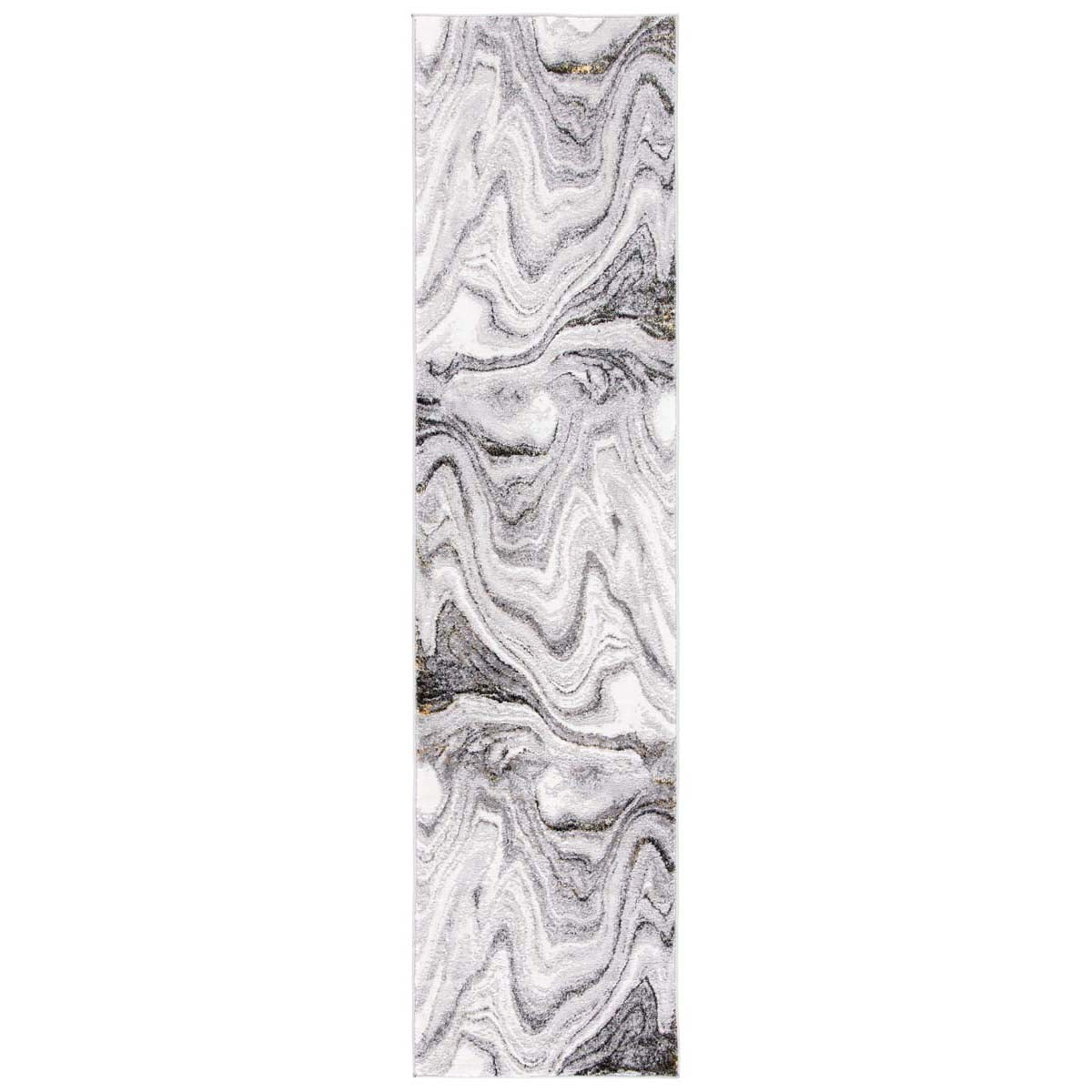 Discover the seamless blend of luxury and durability with our Contemporary Grey/Gold Runner Rug. Crafted in Turkey, this 2' X 8' power-loomed masterpiece boasts a modern, abstract pattern, reminiscent of flowing marble veins, that will captivate and elevate the style of any hallway or narrow space. Constructed from a resilient mix of 50% Polypropylene and 50% Polyester, it's designed to endure daily foot traffic with its 3/8" pile height, providing both comfort and sophistication underfoot. OEKO-TEX certification ensures that this runner is free from harmful substances, making it a safe choice for your home environment. Add an instant touch of elegance with this eye-catching, contemporary floor covering.