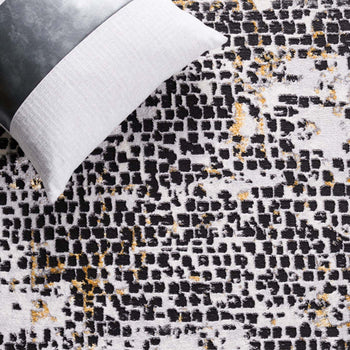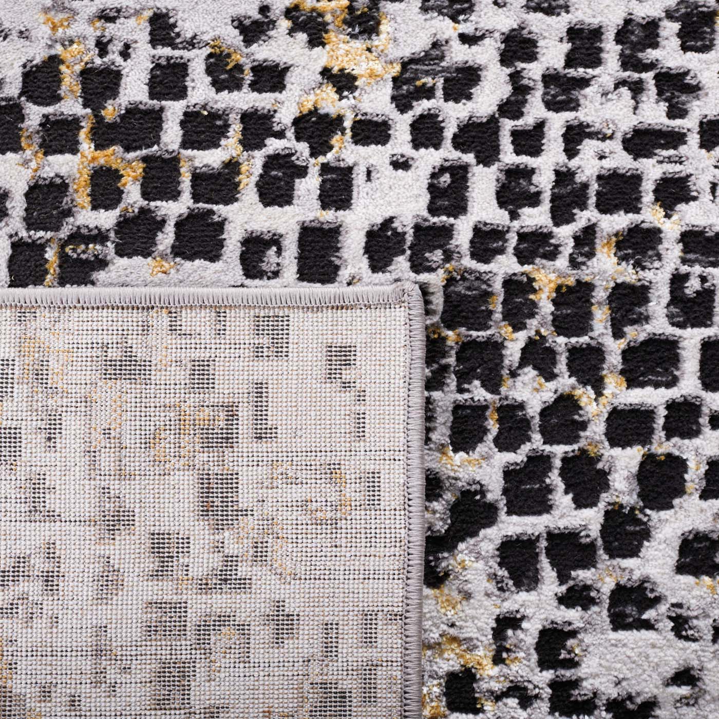 Elevate your home with the sophisticated charm of our Contemporary Charcoal/Gold Runner Rug. Measuring 2' X 8' with a plush 3/8" pile height, this elongated accent piece is expertly crafted in Turkey using state-of-the-art power loomed technology for unparalleled durability. The 50% Polypropylene and 50% Polyester blend ensures a soft, luxurious feel underfoot with minimal shedding. An OEKO-TEX certification guarantees that it's free from harmful substances, making it a safe choice for your family. The eye-catching abstract pattern infuses your space with modern elegance, making this runner a perfect addition to hallways or living areas seeking a touch of glamour.