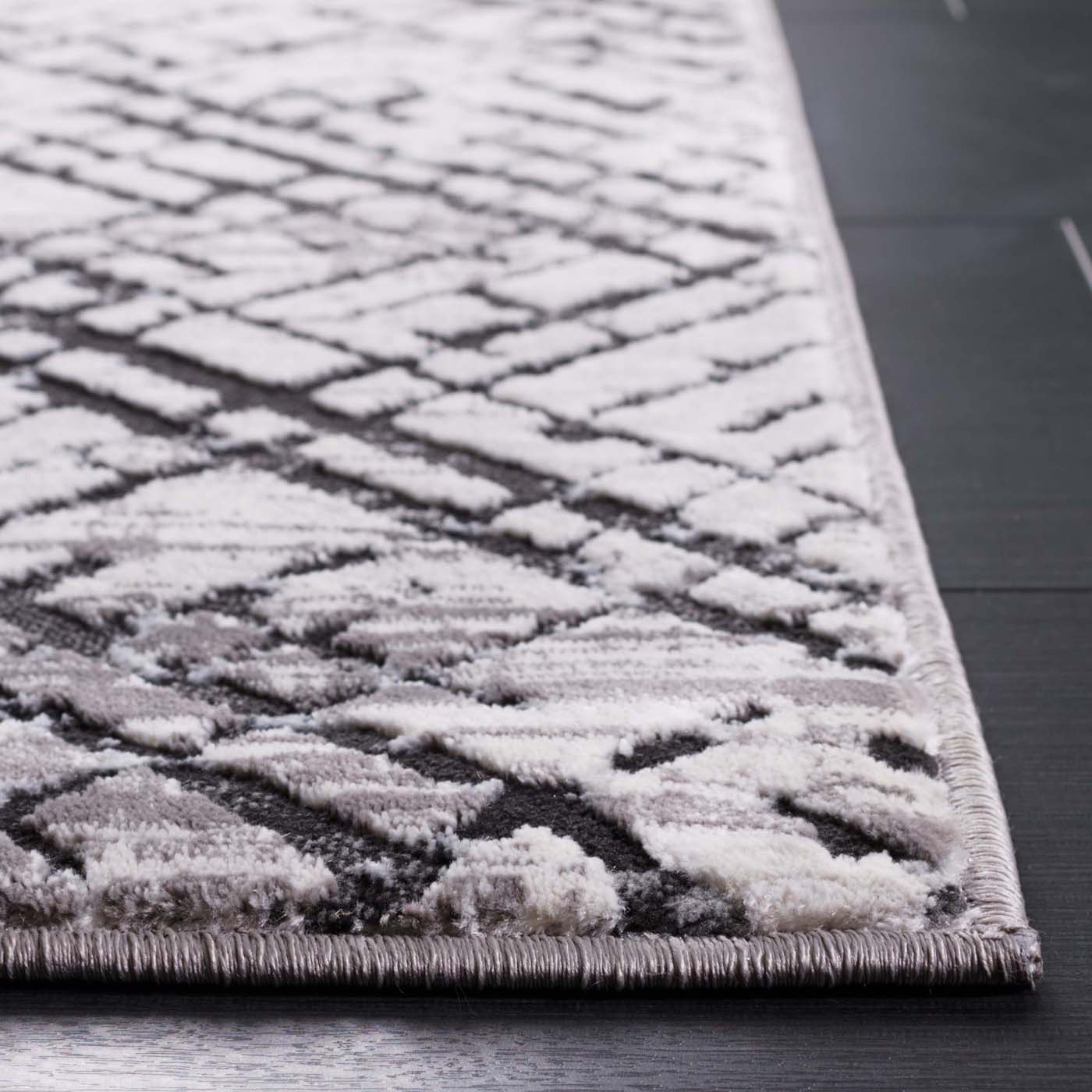 Elevate your home with the sleek sophistication of our 2' X 8' runner area rug, a harmonious blend of grey and charcoal hues that will effortlessly complement your contemporary decor. Masterfully power-loomed using a 50% Polypropylene and 50% Polyester blend, this rug provides a soft yet durable surface with a comfortable 3/8" pile height. Each strand of fabric exemplifies the intricate craftsmanship from Turkey, ensuring a high-quality finish that's both stylish and long-lasting. The abstract pattern infuses modernity into any space, while the OEKO-TEX certification guarantees that it's free from harmful substances. Make a statement in sustainability and style with this striking runner rug.