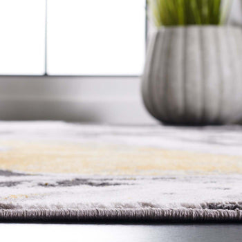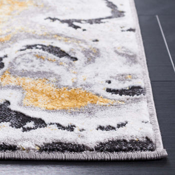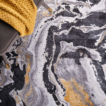 Introducing our stylish accent area rug, meticulously crafted in Turkey with the cutting-edge Power Loomed technique, blending a perfect 50/50 mix of Polypropylene and Polyester for durability and softness. This 2' X 4' contemporary rug boasts an attractive height of 3/8", ideal for any room needing a touch of elegance. Its sophisticated grey and gold hues create a modern marbled pattern, offering an artistic and chic ambiance to your space. OEKO-TEX certification assures safety and environmental care in its creation. Enhance your home with this luxurious, contemporary piece, designed to capture attention and withstand the test of time.