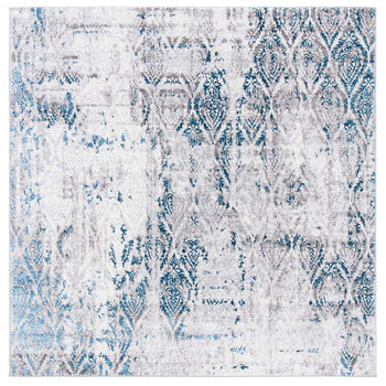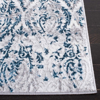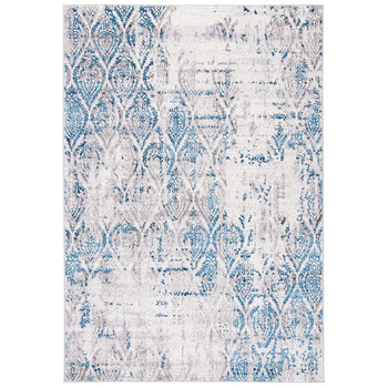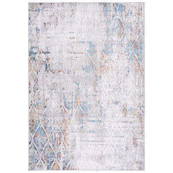 The rug's captivating pattern features a harmonious blend of grey, blue, and gold hues, offering a visual feast that draws the eye and complements a variety of decors. Made in Turkey, a country renowned for its rug-making heritage, each weave incorporates the promise of quality and time-honored techniques.
