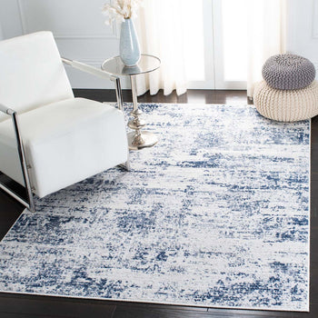 Elevate your space with this exquisite contemporary style accent rug, perfectly sized at 2 feet 2 inches by 4 feet. The sophisticated ivory and navy color palette complements a modern abode, bringing a touch of elegance to any room. Crafted using a power loomed technique for precision and durability, the rug boasts a comfortable 3/8 inch pile height, ideal for high traffic areas.